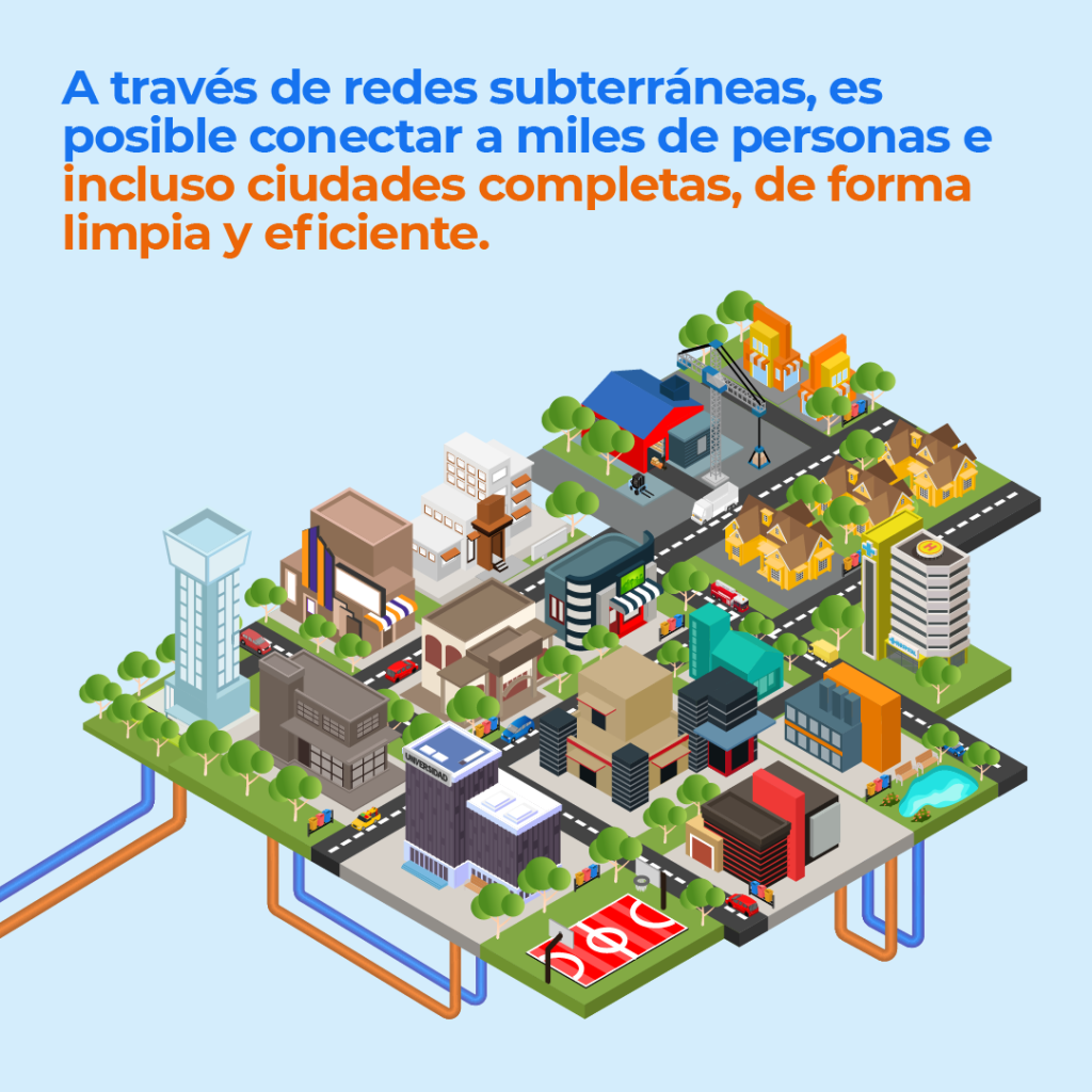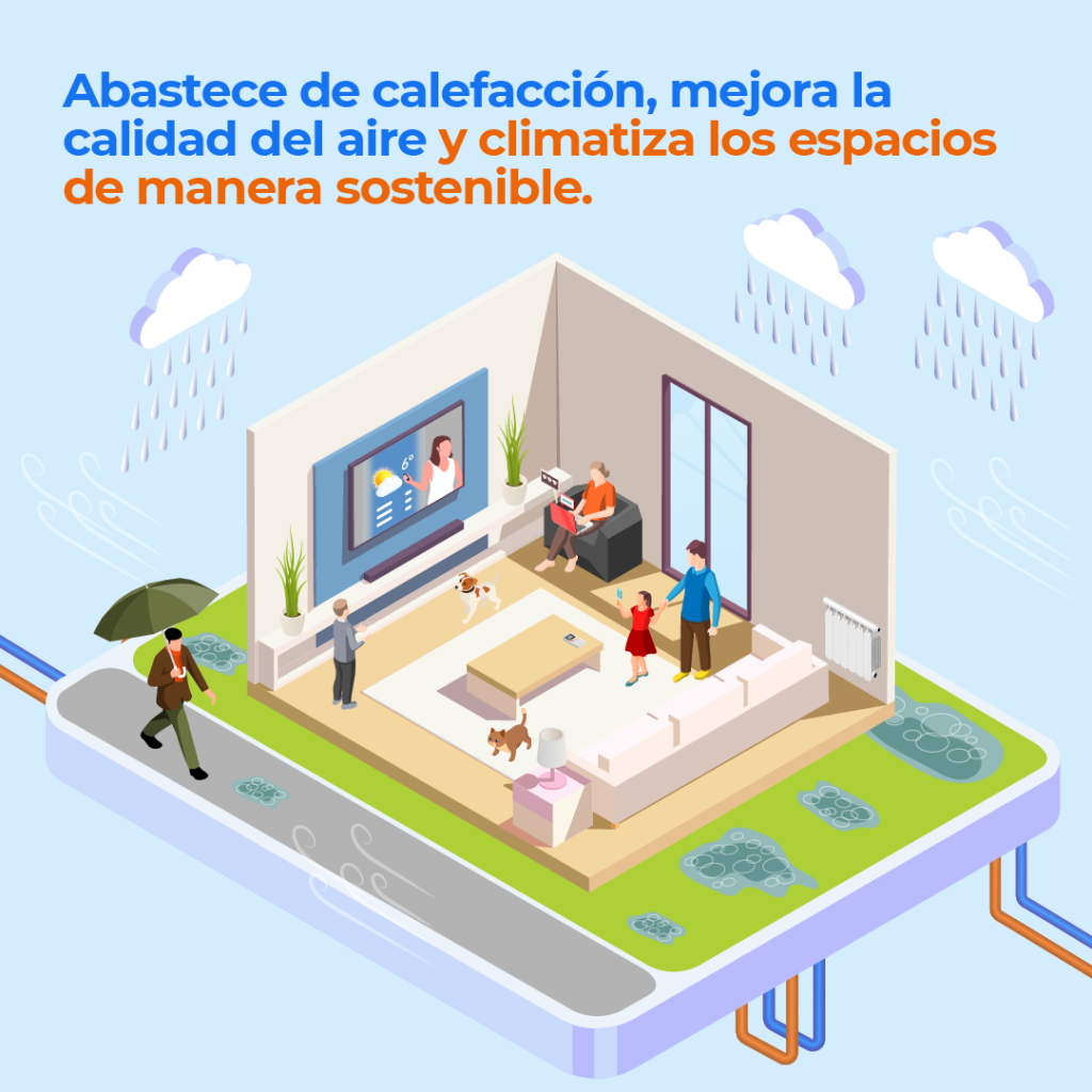 Los sistemas de energía distrital son redes de tuberías aisladas subterráneas que bombean agua caliente o fría a varios edificios en un barrio, vecindario o ciudad, abasteciéndolos de calefacción, agua caliente sanitaria y refrigeración. Estos sistemas crean sinergias entre la demanda y la producción en las plantas de generación, las cuales pueden integrarse con calor residual de otras industrias. Esto permite redes energéticas que entregan climatización con bajas emisiones en carbono y energéticamente eficientes, maximizando los recursos renovables locales.